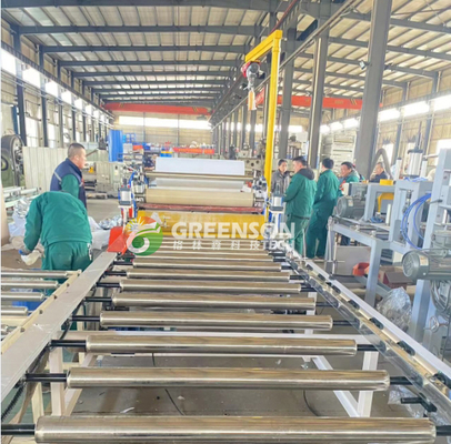 Esta máquina de laminação de placas de gesso processa placas de gesso revestidas de papel (de 6 mm a 8 mm de espessura) aplicando cola especial em ambos os lados, em seguida, laminando com filme de PVC e folha de PET.As placas acabadas são cortadas em tamanhos padrão (60×60mm) para uso como falsos tetos em aplicações de decoração de interiores.