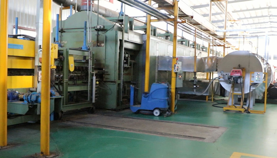 As matérias-primas utilizadas na produção de lã de rocha incluem basalto, dolomita, aglutinantes, etc. As matérias-primas são carregadas na tremonha pelo elevador, e o forno de fusão é aquecido e derretido no tanque de fluxo de fusão. O fluxo de lava é resfriado e transformado em fibras pela centrífuga, e então pulverizado na sala de moldagem de fibras. O aglutinante é adicionado durante o processo de pulverização, e as fibras são aquecidas pelo vento de pressão negativa. Puxar para baixo para a correia de malha para formar o feltro original. A correia de malha transporta o feltro original para a máquina de tecido pendular para balançar o tecido. O feltro original após o tecido oscilante é transportado para o forno de cura pela máquina de tecido, e corre para frente entre as correias de corrente superior e inferior. O soprador de ar quente sopra o ar quente para o forno de cura. O feltro de algodão no forno é solidificado, e os produtos solidificados são cortados, primeiro cortando longitudinalmente, e depois cortando transversalmente, e o produto acabado é embalado e colocado no armazenamento.